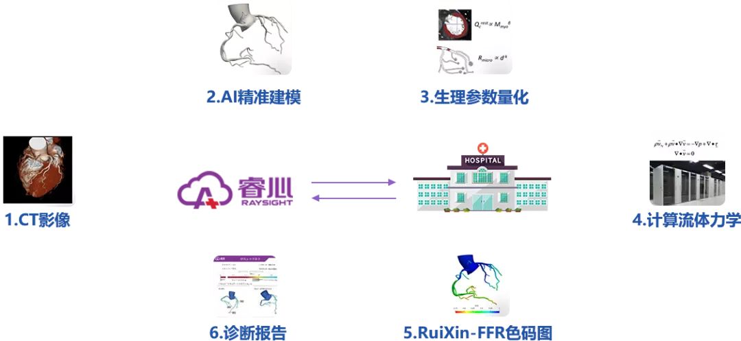 睿心分數(shù)(Ruixin-FFR),是一款無創(chuàng)冠脈血流儲備分數(shù)評估平臺,基于冠狀CT血管影像計算獲得CT血流儲備分數(shù),在行冠脈造影前,輔助醫(yī)生評估穩(wěn)定性冠心病患者的功能性心肌缺血癥狀。僅需無創(chuàng)CTA DICOM,即可對患者冠脈供血情況進行評估。