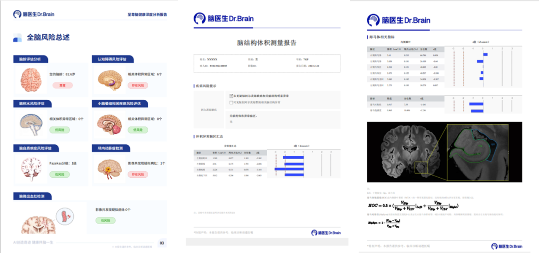 是專注在中樞神經(jīng)系統(tǒng)疾病的人工智能診斷分析平臺,基于醫(yī)未自行搭建的全年齡段中國人群全腦結(jié)構(gòu)影像數(shù)據(jù)庫,結(jié)合前沿的大數(shù)據(jù)分析和人工智能等核心技術(shù),快速、精準評估全腦結(jié)構(gòu)變化、腦白質(zhì)病變、微出血灶及腦血流量等,以量化、直觀的結(jié)果,輔助臨床做出超早期的精準診斷及疾病進展預測。