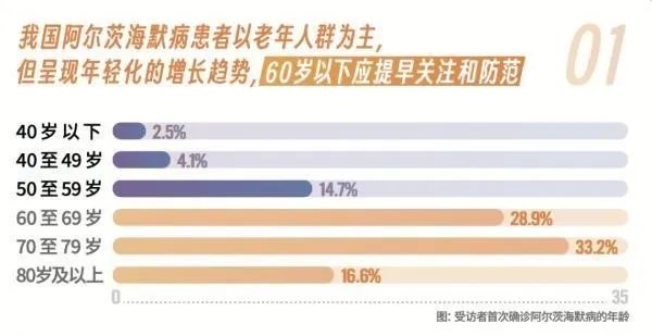 數(shù)據(jù)表明,首次確診阿爾茨海默病的人群中,年齡在60至79歲之間的人群占比最高,為62.1%。但值得注意的是,60歲以下的阿爾茨海默病發(fā)病患者在本次調(diào)查中占到了21.3%,相比國際上報道的早發(fā)型阿爾茨海默病占比5-10%更多,表明阿爾茨海默病在我國發(fā)病越來越年輕化。由于這類罹患人群尚處工作年齡,需要引起全社會的高度重視,強化全人群健康教育,加強疾病預防、早期篩查和診斷。