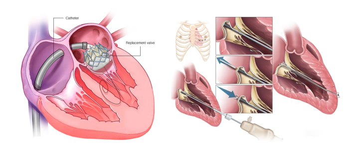 相當(dāng)于外科手術(shù)的百年歷史,介入手術(shù)相對年輕,其原理是人工瓣膜被壓縮在細(xì)小的導(dǎo)管中,經(jīng)皮穿刺進(jìn)入人體,輸送至需要治療的瓣膜位置,在超聲等影像設(shè)備的支持下,完成瓣膜修復(fù)或更換。由于介入手術(shù)無需心臟停跳和體外循環(huán),手術(shù)安全性大大提高,因此尤其適用于外科手術(shù)的中高?;颊吆透啐g患者。得益于影像技術(shù)和介入產(chǎn)品的快速發(fā)展,介入手術(shù)的適應(yīng)癥也在逐步擴大,部分外科手術(shù)低風(fēng)險患者也可選擇行介入治療。