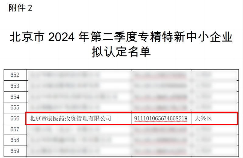 2024年8月8日,北京市經(jīng)濟和信息化局發(fā)布通知公告《關(guān)于對北京市2024年度第二季度專精特新中小企業(yè)名單進行公示的通知》,奧泰康北京CDMO中心(北京帝康醫(yī)藥投資管理有限公司)被成功認定為北京市“專精特新”中小企業(yè),這也是繼國家高新技術(shù)企業(yè)、中關(guān)村高新技術(shù)企業(yè)、北京市創(chuàng)新型中小企業(yè)之后獲得的又一項重要資質(zhì)。