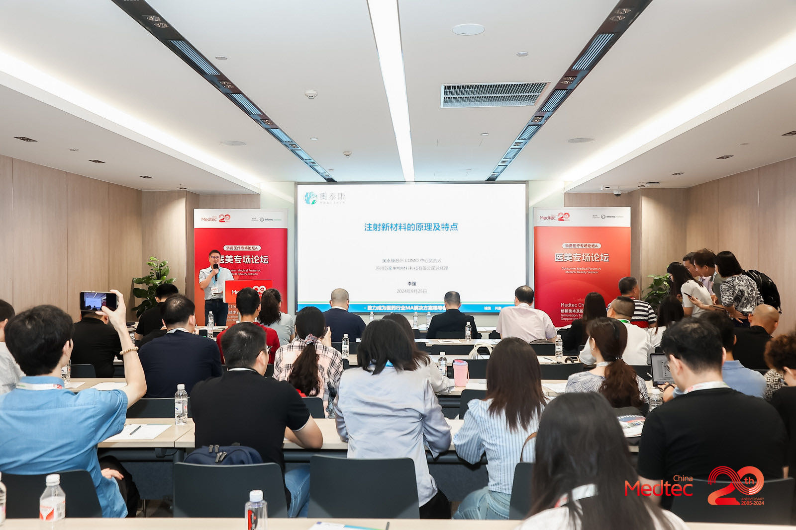 9月27日,上海世博展覽館,Medtec China 2024暨第十八屆國際醫(yī)療器械設(shè)計與制造技術(shù)展覽會落下帷幕,這一盛會匯集了來自全球各地的頂尖企業(yè)、科研機構(gòu)及行業(yè)專家。奧泰康作為參展商受邀參加會議,在醫(yī)美專場論壇中,奧泰康蘇州CDMO中心負責人、蘇州蘇豪生物材料科技有限公司總經(jīng)理李強以《注射新材料的原理及特點》為主題進行分享,與行業(yè)伙伴共同探索醫(yī)療器械領(lǐng)域的最新趨勢與未來發(fā)展方向。