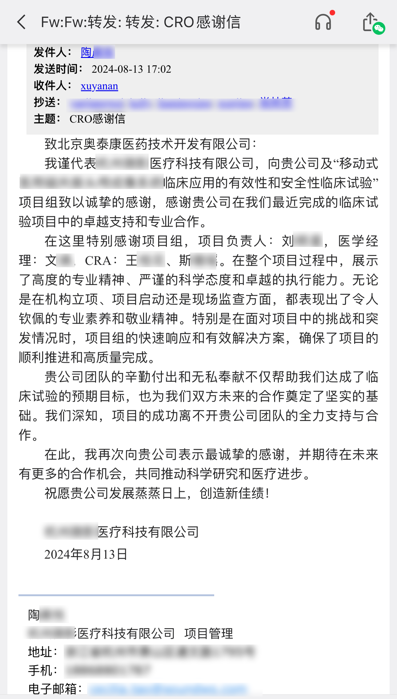 感恩有你,未來可期。在感恩節(jié)來臨之際,我們對(duì)合作伙伴的理解和支持表示感激,也對(duì)臨床項(xiàng)目組成員表示感恩,是大家每個(gè)人的共同努力使得項(xiàng)目得以順利開展,愿我們的合作之旅,如同星辰大海,浩瀚無垠,充滿無限可能與希望。讓我們帶著這份感恩的心,繼續(xù)前行,共創(chuàng)更加輝煌的明天!