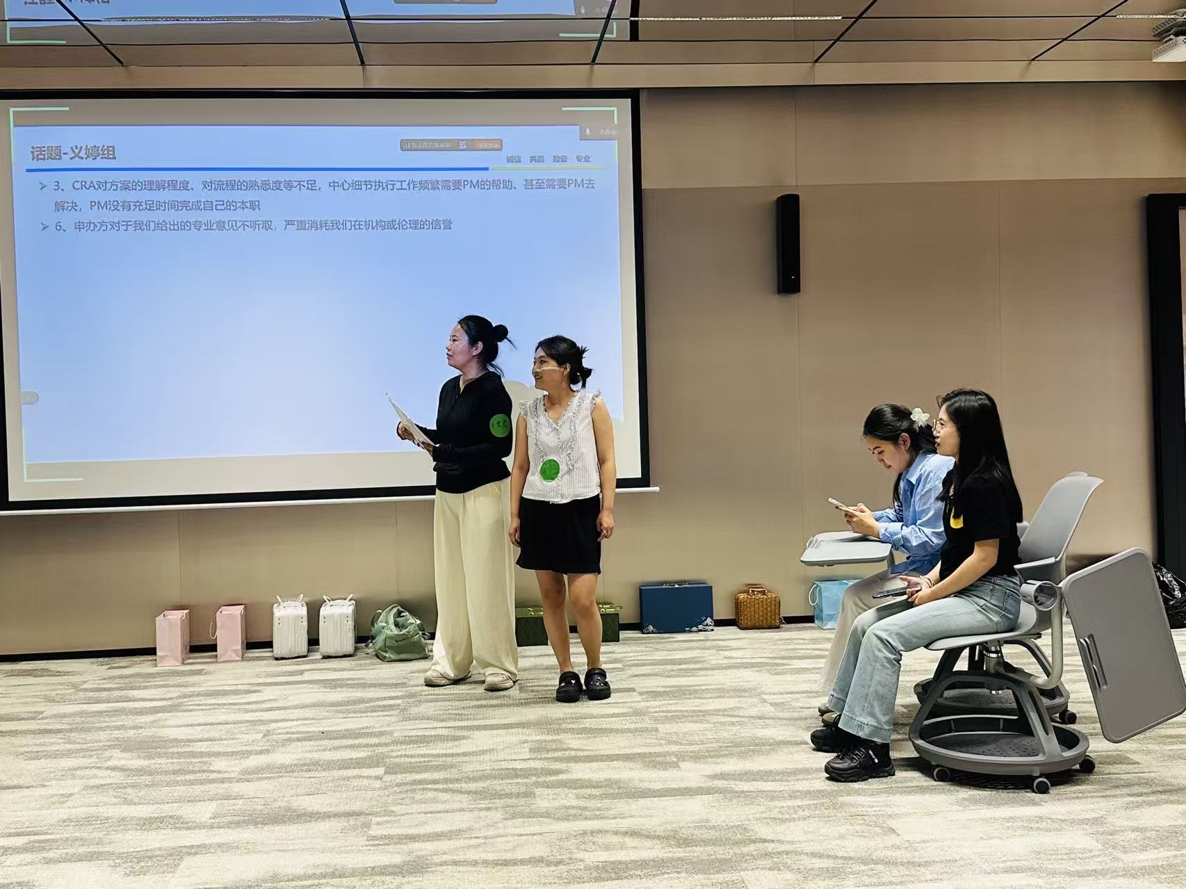 有效的溝通是團(tuán)隊(duì)協(xié)作的基石。本次培訓(xùn)引入了“非暴力溝通”理念,通過(guò)情景模擬與案例分析,幫助學(xué)員掌握傾聽(tīng)、表達(dá)與反饋的技巧,減少人際沖突,提升團(tuán)隊(duì)凝聚力。通過(guò)不同情節(jié)的生動(dòng)演繹,團(tuán)隊(duì)成員詮釋出日常工作中的各種棘手問(wèn)矛盾,許多學(xué)員表示,這一環(huán)節(jié)讓他們重新審視了溝通方式,學(xué)會(huì)了如何以更平和、高效的方式解決工作中的矛盾。這不僅是一種技巧,更是一種修行,它能幫助我們化解與研究者、受試者或團(tuán)隊(duì)成員間的潛在沖突,營(yíng)造和諧、高效的工作氛圍。