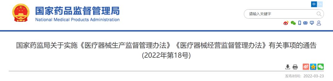 《醫(yī)療器械生產(chǎn)監(jiān)督管理辦法》(國家市場監(jiān)督管理總局令第53號)(以下簡稱《生產(chǎn)辦法》)《醫(yī)療器械經(jīng)營監(jiān)督管理辦法》(國家市場監(jiān)督管理總局令第54號)(以下簡稱《經(jīng)營辦法》)已經(jīng)發(fā)布,自2022年5月1日起施行。現(xiàn)將有關(guān)事項通告如下: