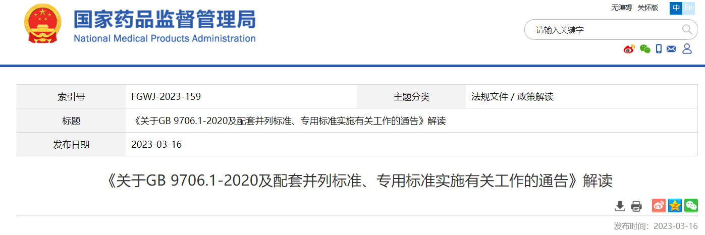 關(guān)于GB 9706.1-2020及配套并列標(biāo)準(zhǔn)、專用標(biāo)準(zhǔn)實施有關(guān)工作的通告(2023年第14號)及解讀